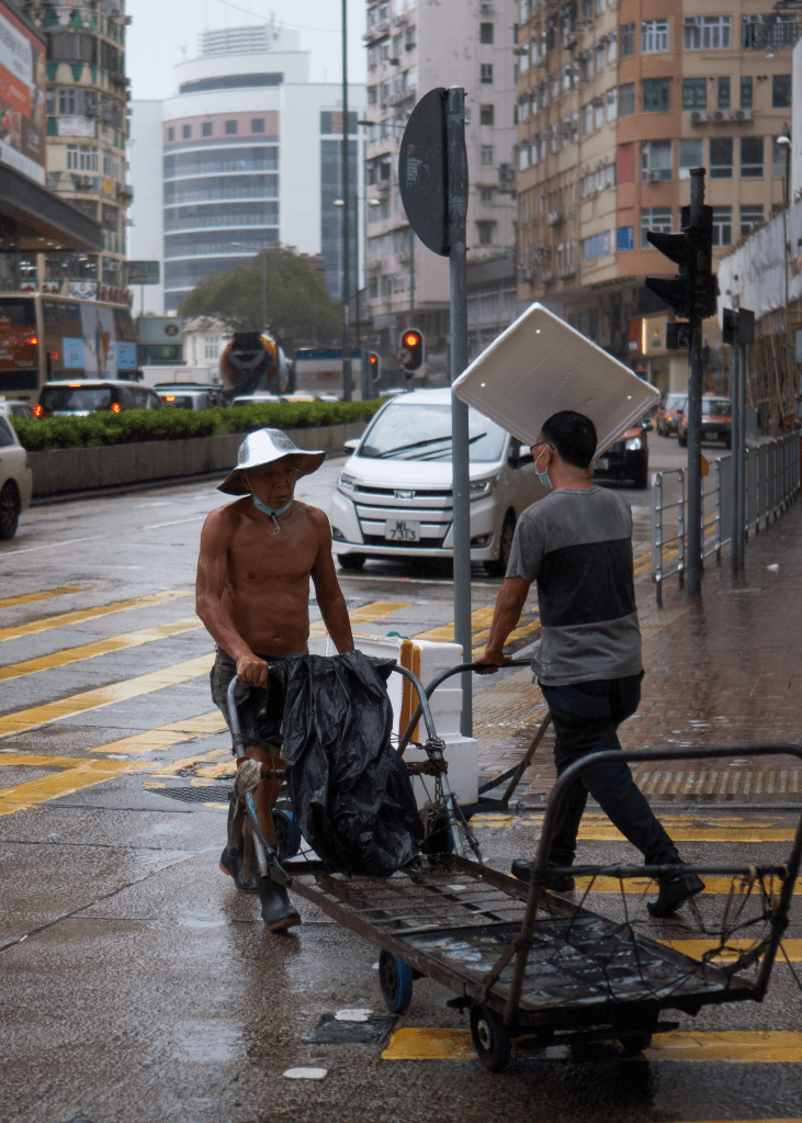 Hong Kong’s elderly take care of the street. It is still bizarre to see the inequality where the elderly are engaged in tough labour in one of the richest places on earth. A city where the government spends billions in projects that nobody asks for and whose political parties campaign for token efforts. Two dollar public transport for the elderly. Why not free for everyone, why not proper healtcare instead of vouchers? Why not a pension for the elderly instead of collecting cardboard? For that matter why not actual recycling schemes instead of dumping it somewhere in a place already short of land. Hong Kong is a place of contrasts.